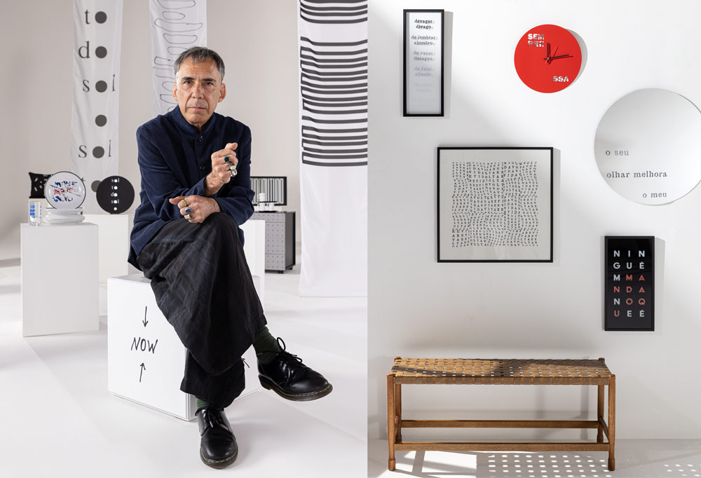 A coleção reúne itens de mesa posta, como louças, pratos, copos, guardanapos e panos de prato, além de quadros, almofadas, sacola, tapetes, espelhos, luminária, móveis e acessórios de escritório. Pensadas para criar atmosferas únicas que unem funcionalidade e expressão poética, as peças exploram jogos tipográficos, cores contrastantes e formas inusitadas, características marcantes da obra de Antunes.