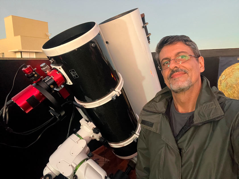 Os registros são feitos a partir de seu observatório amador, batizado de Kronos, no quintal de sua casa, em São Carlos. O espaço tem cerca de nove metros quadrados e telhado retrátil, e abriga diferentes telescópios, entre eles um newtoniano de 250 milímetros de diâmetro, construído pelo próprio docente, usados na captura de imagens de “Céu Profundo”, que revelam luzes emitidas há milhares ou milhões de anos.