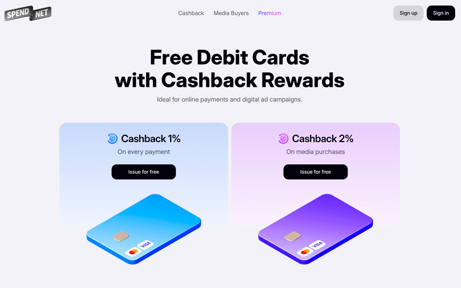 O Spend.net é especialmente conveniente para agências. O diferencial das cartas é o cashback automático de 2% em cada transação. Para a agência, isso significa que mesmo com alto volume, uma parte do dinheiro volta sem esforço extra. O payout é imediato, sem delays, o que ajuda na gestão de budgets grandes e no planejamento exato do ROI.