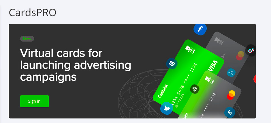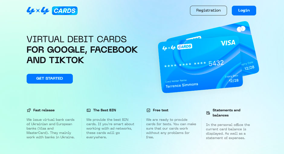 A 4×4 oferece cartões virtuais para pagar ads no Google Ads, Facebook Ads e outras plataformas. Com suporte a Visa e Mastercard, a compatibilidade com os principais sistemas de publicidade está garantida. O maior diferencial: emissão ilimitada de cartões. Isso facilita muito o gerenciamento de várias campanhas e projetos.