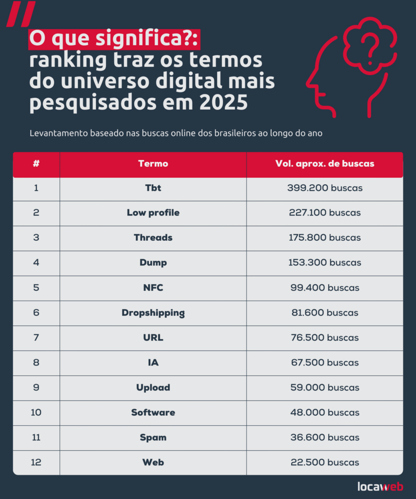 Segundo o novo levantamento da Locaweb, em meio a perguntas envolvendo a linguagem típica das redes sociais, do comércio eletrônico e da programação, desde janeiro, os mecanismos de busca registraram mais de 1,5 milhão de pesquisas do tipo “o que significa?” e “qual o sentido?”, revelando uma dificuldade comum ao compreender certas expressões que marcam a comunicação na Web.