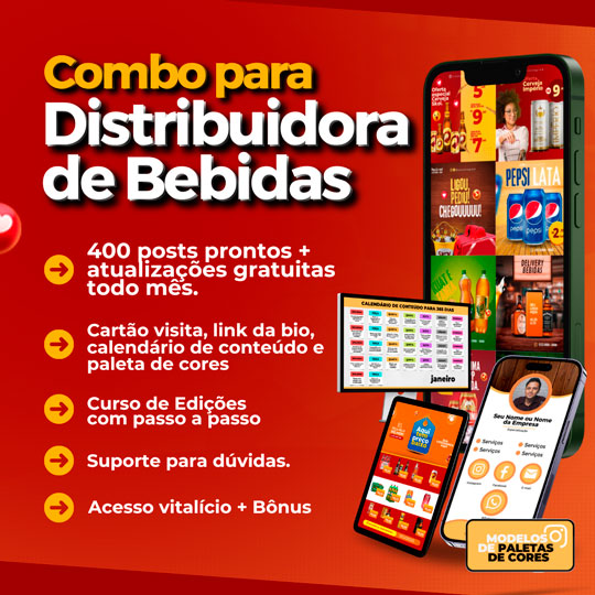 O Combo para Distribuidora de Bebidas, criado pela designer Isa Pacheco, foi pensado para empreendedores que querem profissionalizar o Instagram sem depender de conhecimentos avançados em design. O pacote reúne mais de 400 posts prontos e totalmente editáveis, organizados para facilitar o uso no dia a dia.