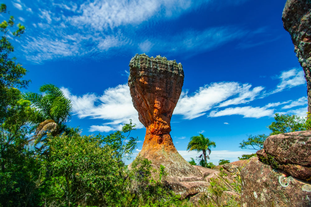 A rocha em formato de taça é o arenito mais famoso do local, considerado um símbolo do Parque Estadual de Vila Velha – Foto: Rdziura (Depositphotos.com)