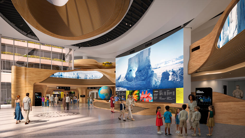 Pensado para ser inclusivo e acessível, o museu da National Geographic contará com sinalização em inglês e espanhol, conteúdos em braile, recursos em Língua Americana de Sinais (ASL) e até fotografias táteis. A sustentabilidade também é um dos pilares do projeto, que busca certificação LEED Platinum e adota práticas de construção responsável.