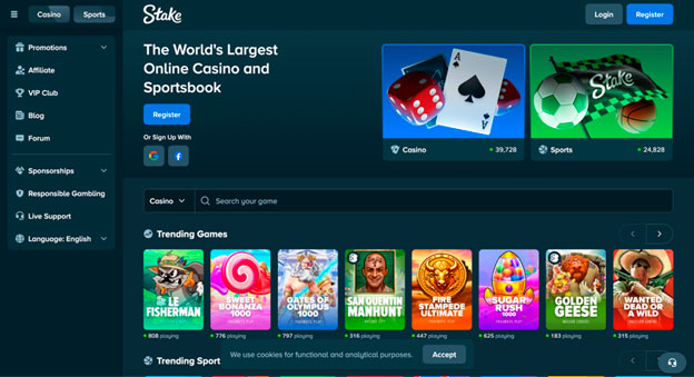 Visão Geral da Empresa: Ed Craven e Bijan Tehrani cofundaram a Stake em 2017, e ela cresceu para se tornar o casino de cripto mais reconhecido do planeta. A plataforma oferece mais de 4.000 jogos, Stake Originals exclusivos com mecânicas comprovadamente justas, e uma casa de apostas cobrindo mais de 50 esportes. Em vez de um bônus de boas-vindas padrão, a Stake oferece pools de prêmios contínuos, como a corrida diária de $100.000 e a rifa semanal de $75.000. O site suporta mais de 20 criptomoedas com retiradas instantâneas e possui operações licenciadas no Peru, México, Colômbia e Brasil. A Stake tem uma classificação de 4,0/5 no Trustpilot com mais de 4.300 avaliações.